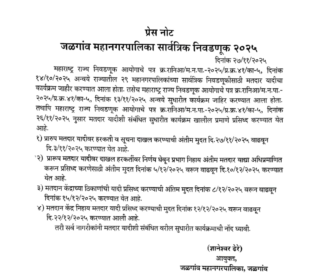 जळगांव म.न.पा. सार्वत्रिक निवडणूक २०२५-२६
